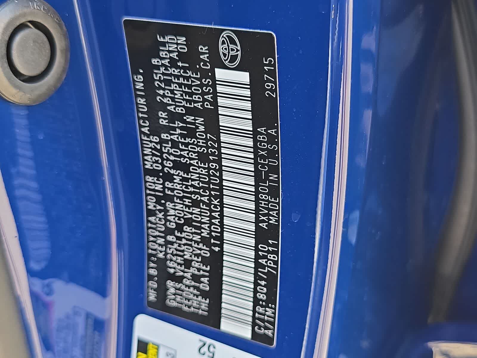 N.º de bastidor: 4T1DAACK1TU291327
