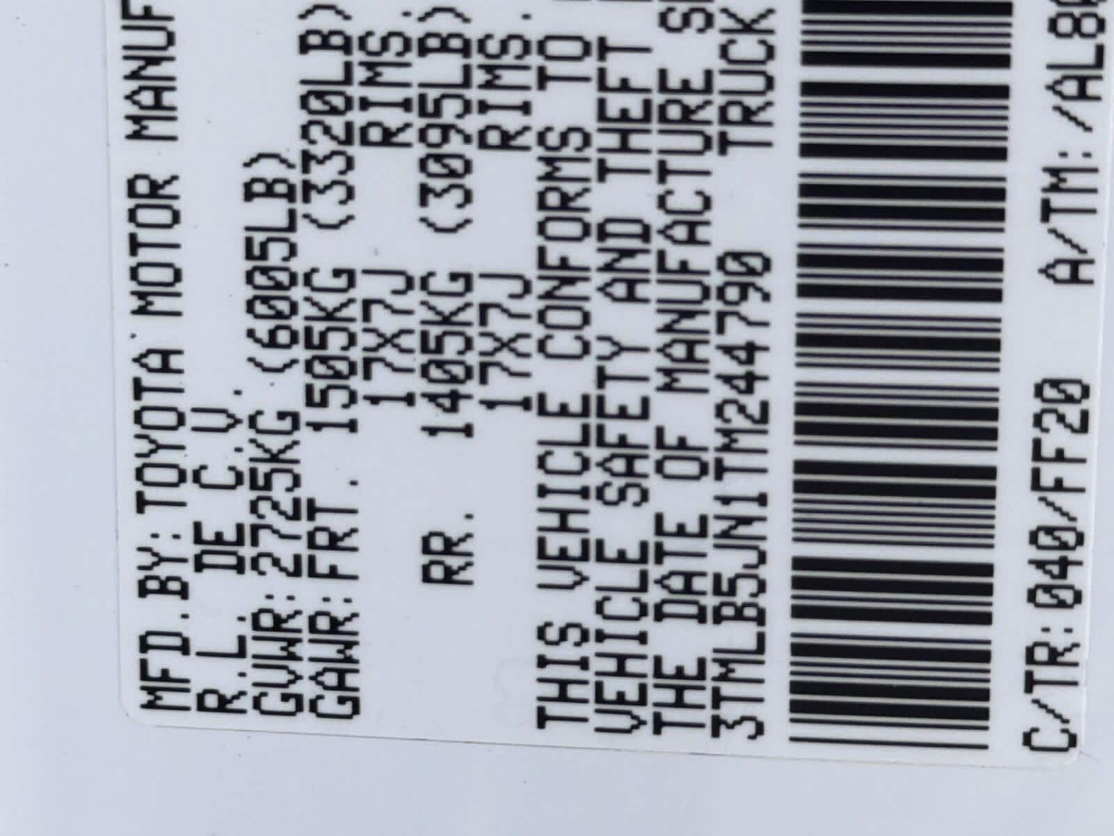 Número de identificación del vehículo (VIN): 3TMLB5JN1TM244790
