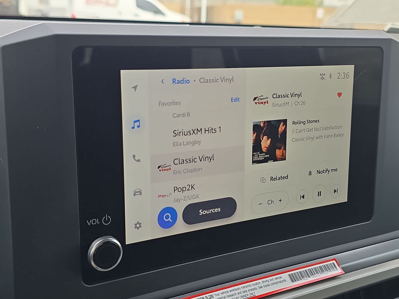 • Pantalla multimedia Toyota Audio de 8 pulgadas con sistema de audio de 6 altavoces, Apple CarPlay® inalámbrico 11 y Android Auto™ 4 , suscripción de prueba de 3 meses a SiriusXM®. 56 Consulte toyota.com/connected-services para obtener más detalles.