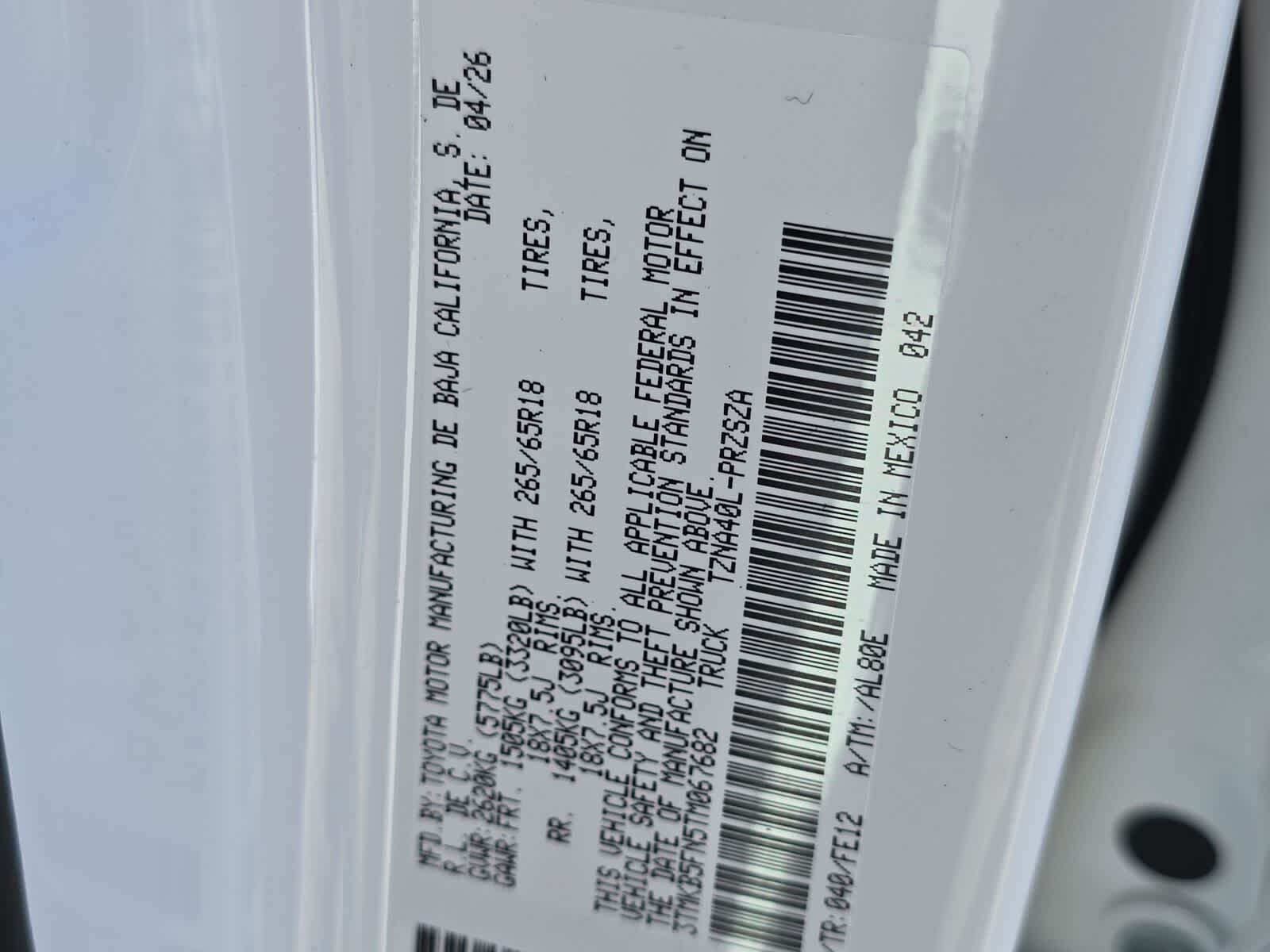 N.º de chasis: 3TMKB5FN5TM067682