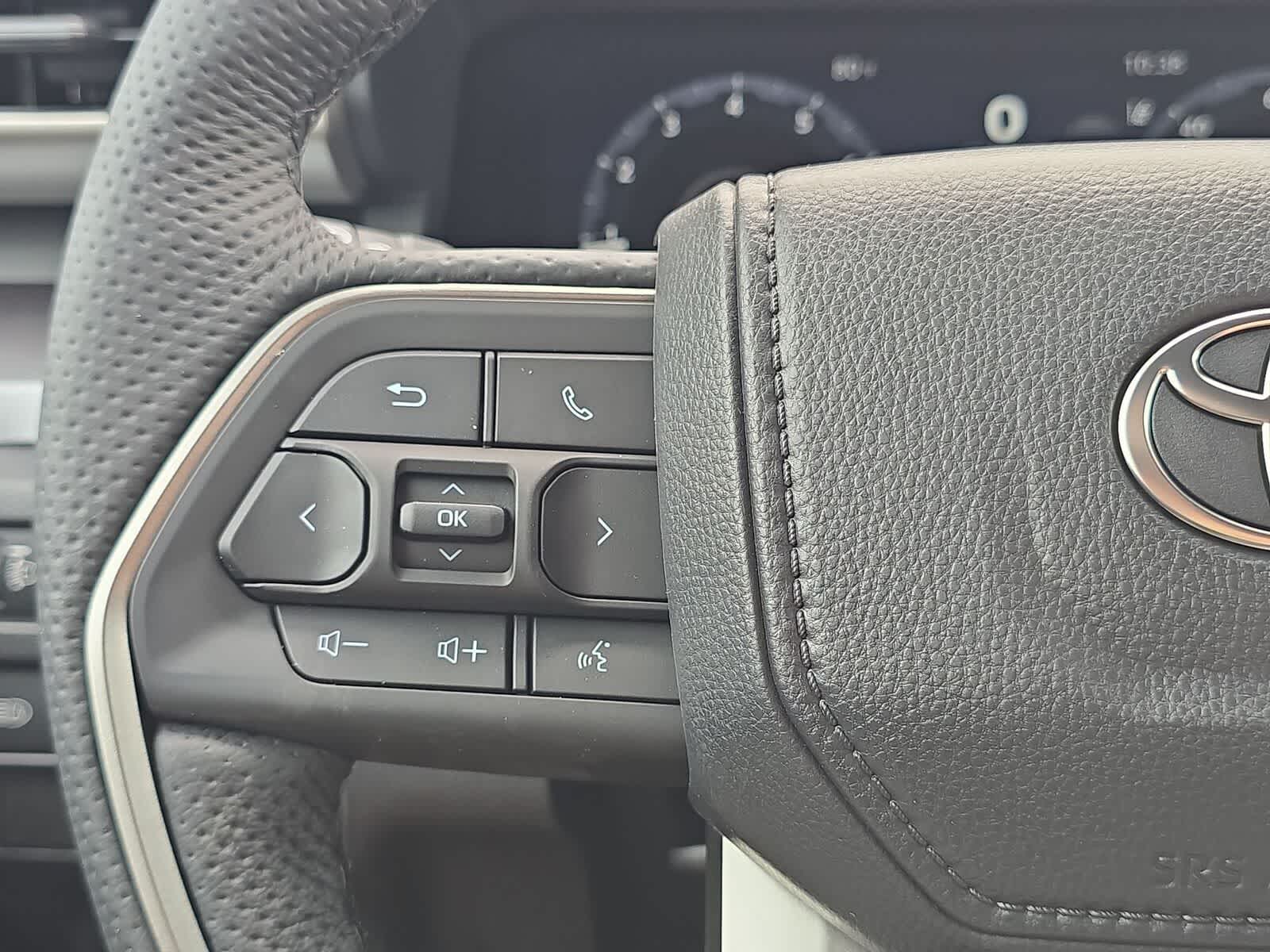 • Volante manual inclinable/telescópico tapizado en cuero con controles de teléfono, audio, pantalla/infoentretenimiento y Driver Assist.