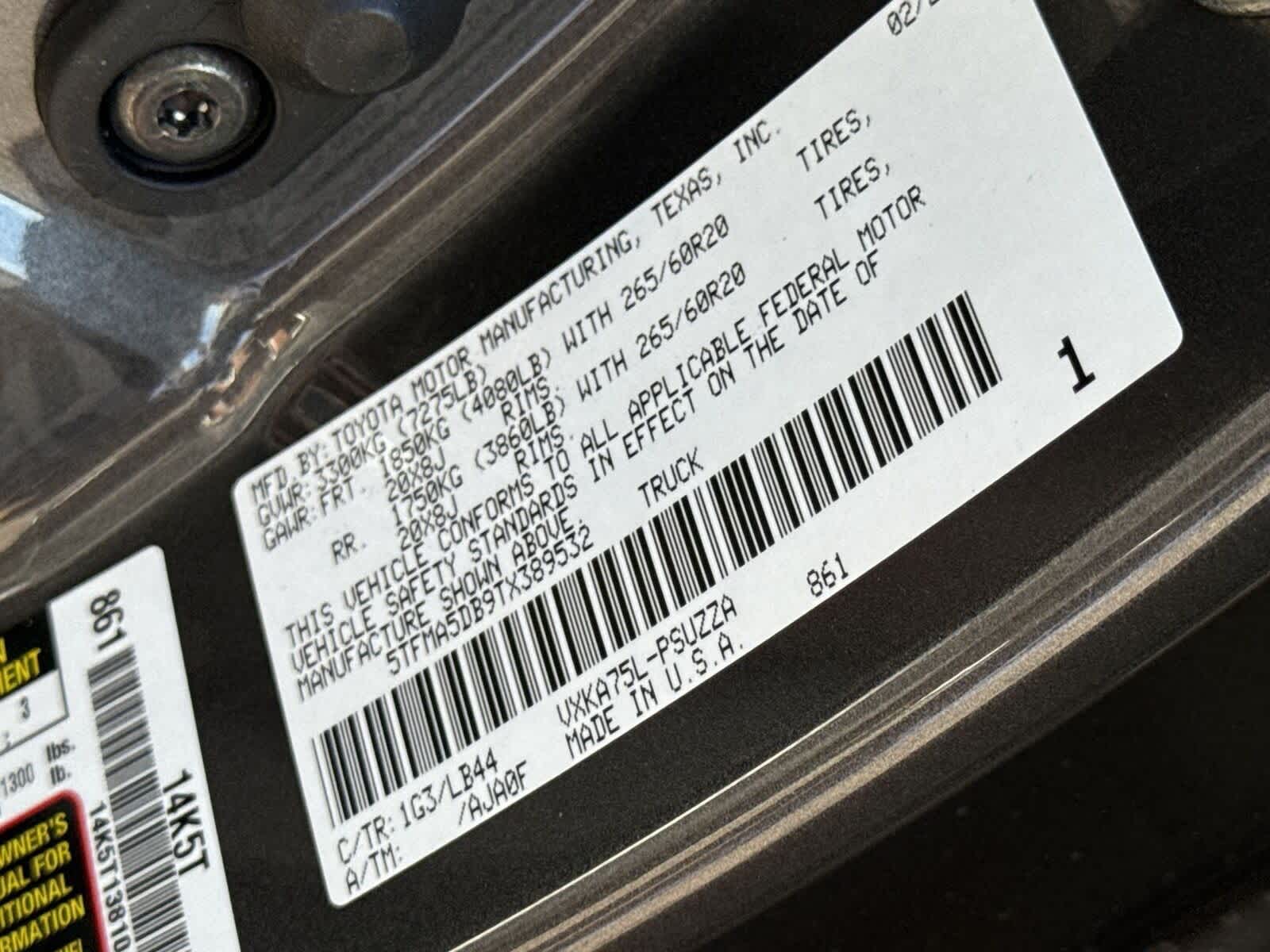 Número de identificación del vehículo (VIN): 5TFMA5DB9TX389532