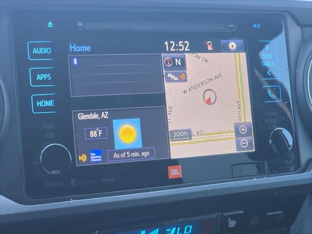 - Radio: Entune Premium con AM/FM/CD/navegación/paquete de aplicaciones —incluye: 6 altavoces, pantalla táctil de alta resolución de 7 pulgadas con pantalla dividida, puerto auxiliar, puerto USB para dispositivos multimedia, Siri Eyes Free, reconocimiento de voz avanzado, función de manos libres Bluetooth®, acceso a la agenda del teléfono y reproducción de música en streaming, radio con memoria—, radio HD, información de tráfico predictiva en HD y superposición meteorológica Doppler, y radio por satélite SiriusXM con suscripción de prueba gratuita de 90 días a SiriusXM All Access incluida, Entune App Suite, búsqueda de destinos, iHeartRadio, MovieTickets.com, OpenTable, Pandora, Yelp, Facebook Places y Slacker Radio