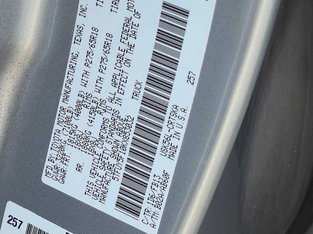 - Nombre del vehículo: Toyota Tundra 4WD