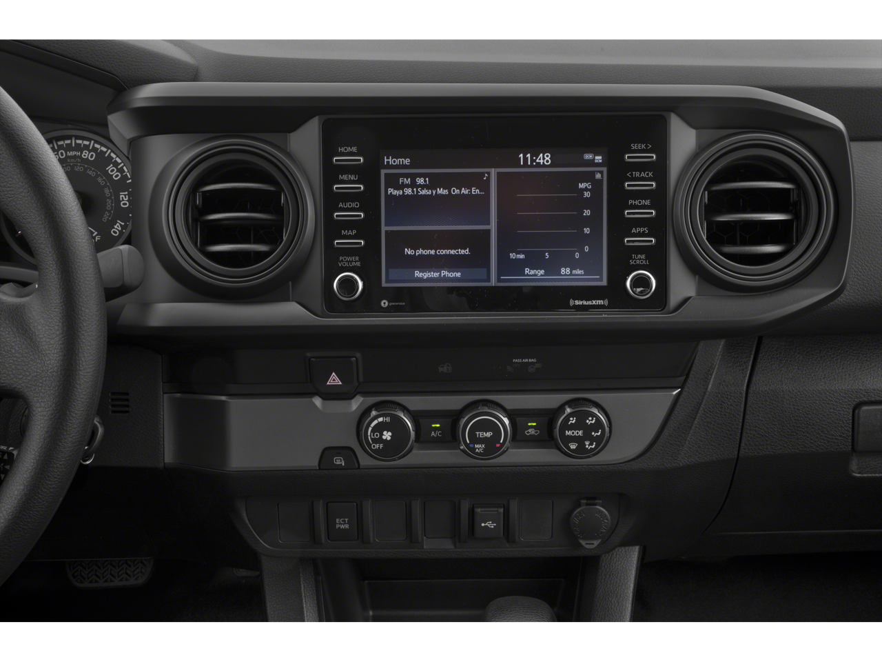 - Radio: AM/FM estéreo; incluye: 6 altavoces, pantalla táctil de 7 pulgadas, puerto auxiliar, puerto USB para dispositivos multimedia, Siri Eyes Free, reconocimiento de voz avanzado, función de manos libres Bluetooth®, acceso a la agenda del teléfono, Apple CarPlay, Android Auto, Amazon Alexa, SiriusXM y reproducción de música en streaming
